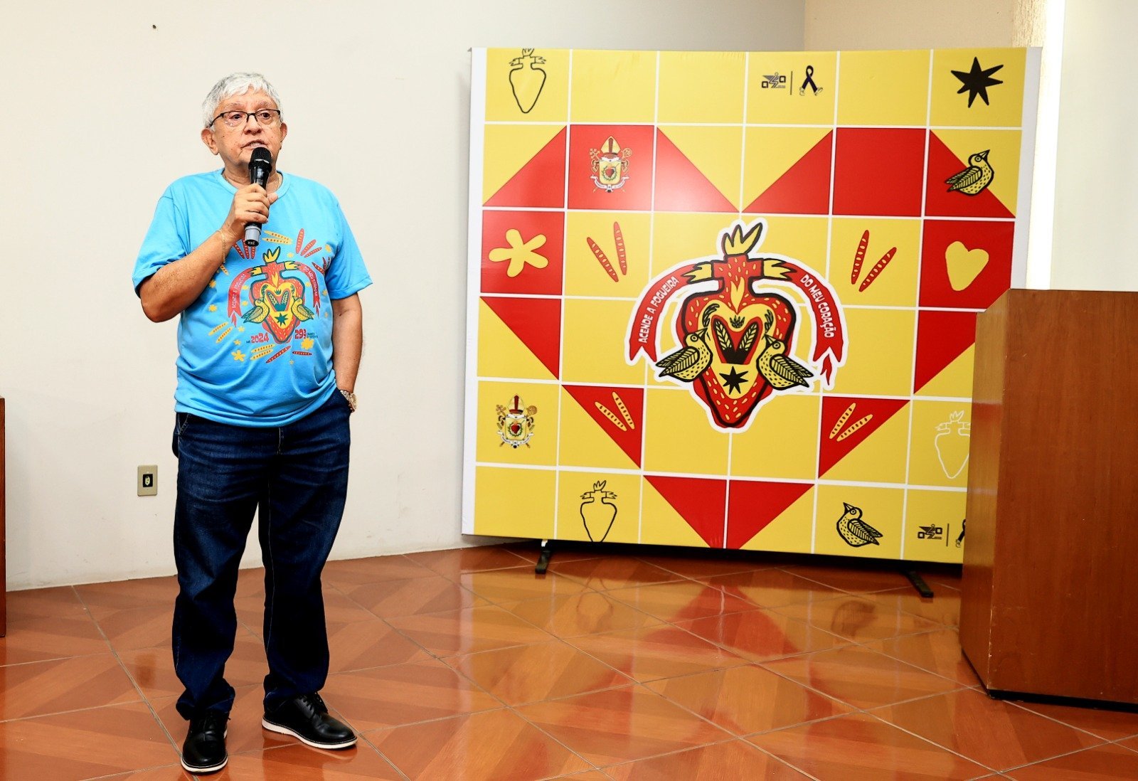 A identidade visual do evento para este ano foi inspirada nas festividades juninas, com destaque para o Sagrado Coração de Jesus ornado por pássaros, simbolizando a conexão entre espiritualidade e cultura. Com uma linguagem artística que resgata elementos e técnicas regionais, a identidade dialoga com o sagrado e o popular com fluidez. “Santo Antônio, que é uma de nossas inspirações para esse ano, nos ilumina em nossa caminhada com o brilho do amor e da união, independente de crenças e origens. Já São João nos inspira a acender a fogueira da alegria. São Pedro nos incentiva a acender a fogueira da solidariedade construindo pontes e acolhendo a todos com o coração”, explicou a coordenadora Emília Nunes.
