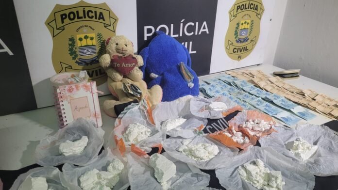 Durante as diligências, os policiais encontraram uma expressiva quantidade de cocaína, além de mais de R$ 7 mil em espécie, que estavam escondidos dentro de ursos de pelúcia no quarto das crianças da casa. Segundo a investigação, os brinquedos eram utilizados como esconderijo para entorpecentes e dinheiro — uma espécie de “cofre do tráfico”.